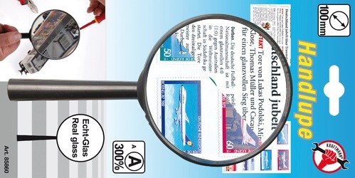 BGS ručno povećalo Ø 100 mm Kraftmann Opis: – Staklena leća za jasnu sliku – 3x povećanje za detaljniji pregled TEHNIČKE SPECIFIKACIJE: – Bruto težina: 200 g – Pakiranje prikladno za zidno vješanje: Da