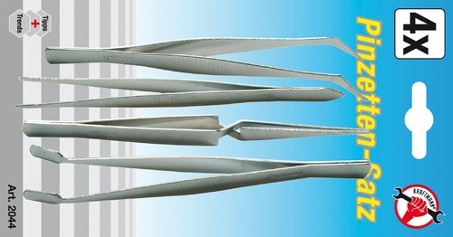 BGS set pinceta | dimenzije 105 – 120 mm | 4-dijelni Pincete s kromiranom završnom obradom površine. Tehnički podaci: Bruto težina: 50 g Pakiranje prikladno za zidno vješanje: Da